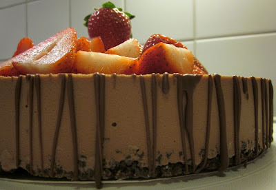Teimme ihanaa suklaamoussekakkua ja sitä oli ihana piristää tuoreilla mansikoilla! 🙂