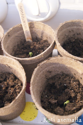 Suurinosa pihasta on haravoituna, varaston edustaa raivasimme lankuista ja risuista. Mulla on tarkoituksena tehdä varaston eteläpäätyyn kasvatuslaatikot salaateille sun muille, sen verran viime kesän pienistä laatikoista sain kipinää omaan kasvimaahan. Avomaankurkut mulla tuolla jo mukavasti keittiössä itää, chili ei meinaa oikein lähteä, mutta josko edes yhden chilipuskan saisin siemenestä kasvatettua. Loput ostan sitten valmiina taimina kun sen aika tulee.