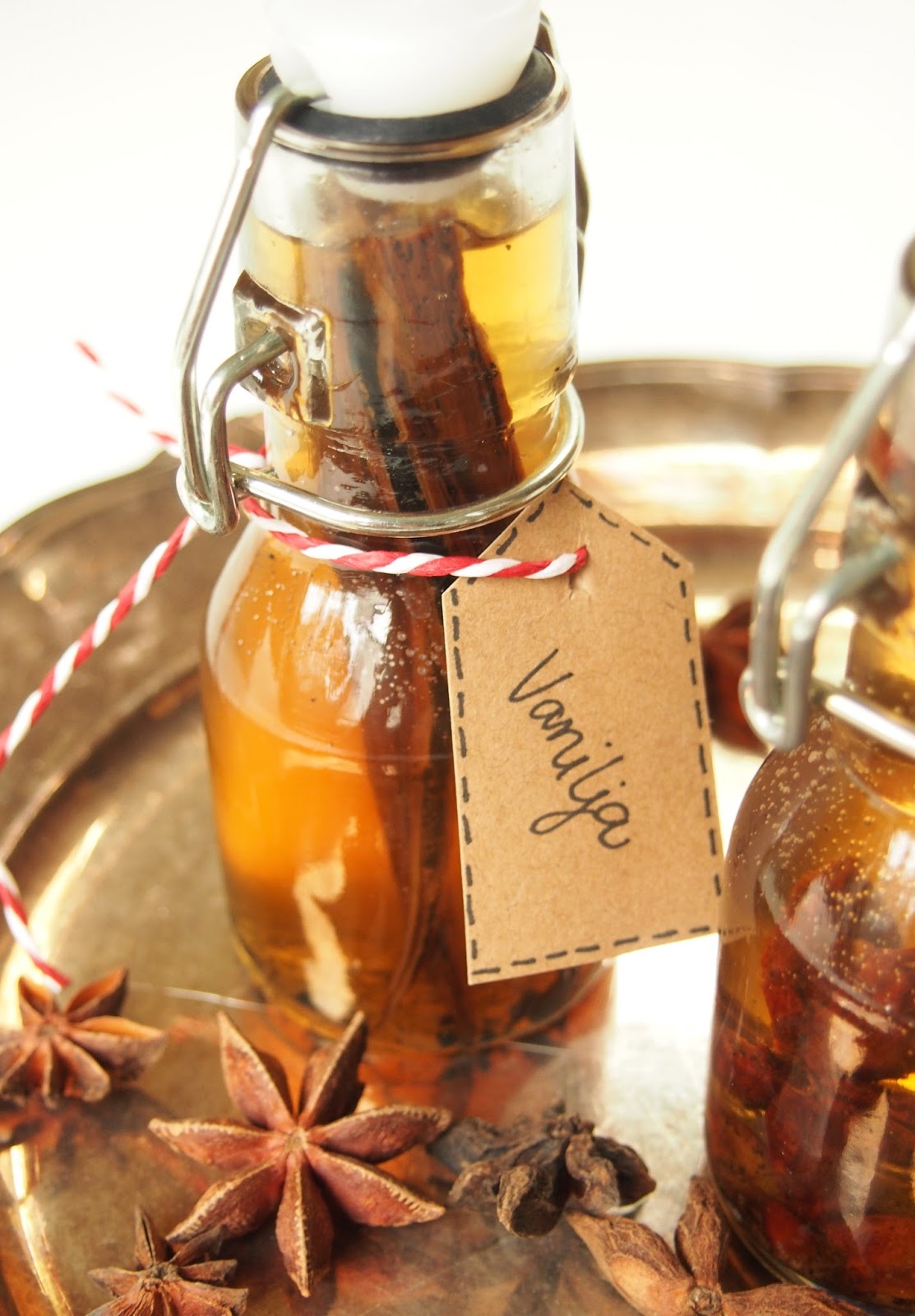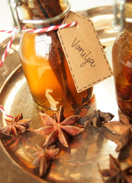 3. Anna tekeytyä kahdesta viikosta kuukauteen, muistaa ravistella päivittäin. Vaikka aromien tekeytymisessä menee n.kuukausi, voit antaa ne lahjansaajalle jo sitä ennen. Kirjoita vaikkapa korttiin milloin aromi alkaa olla parhaimillaan 😉
