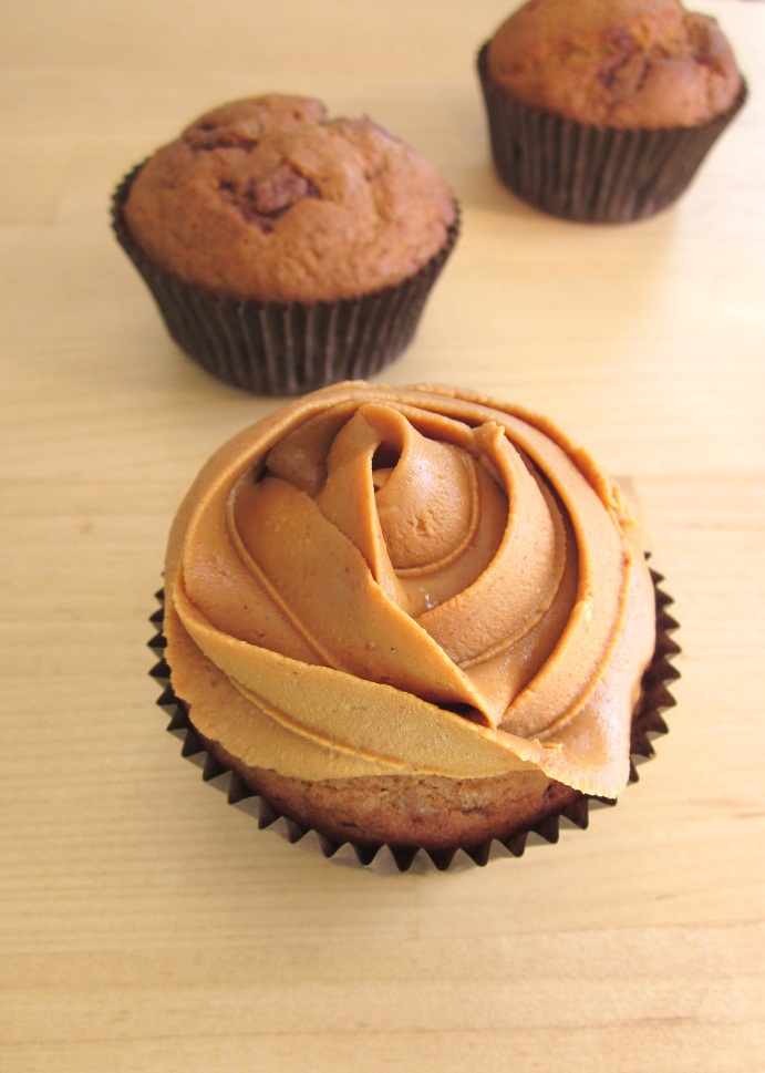 6. Jäähdytä & NAUTI! Itse pursotimme vielä muutaman muffinin pintaan maapähkivoita. Nam.