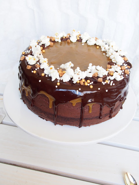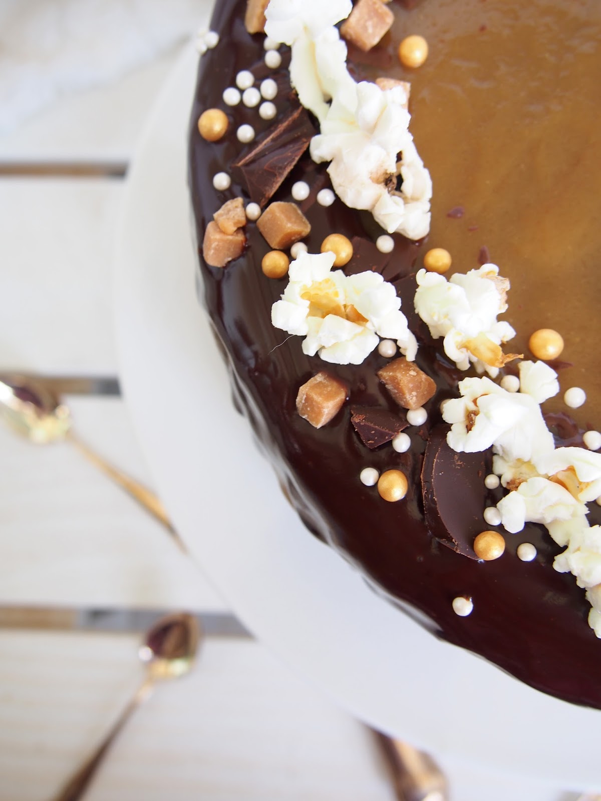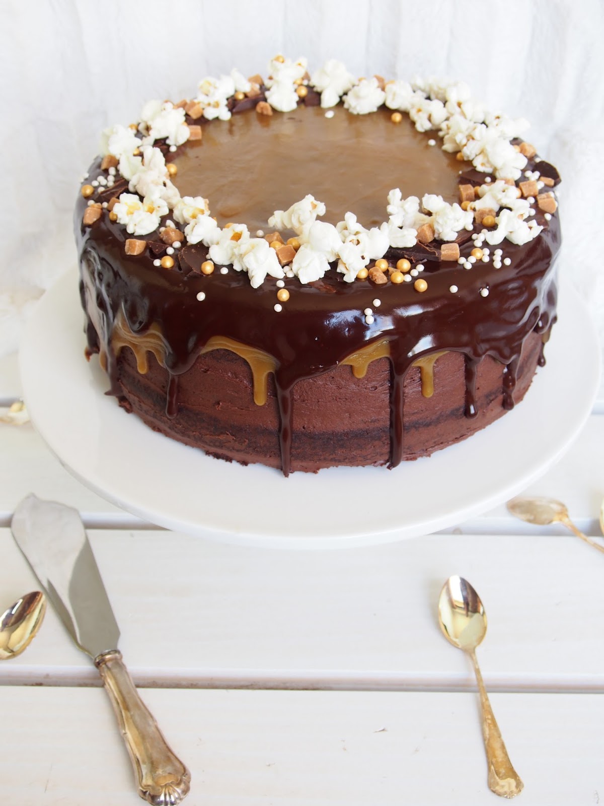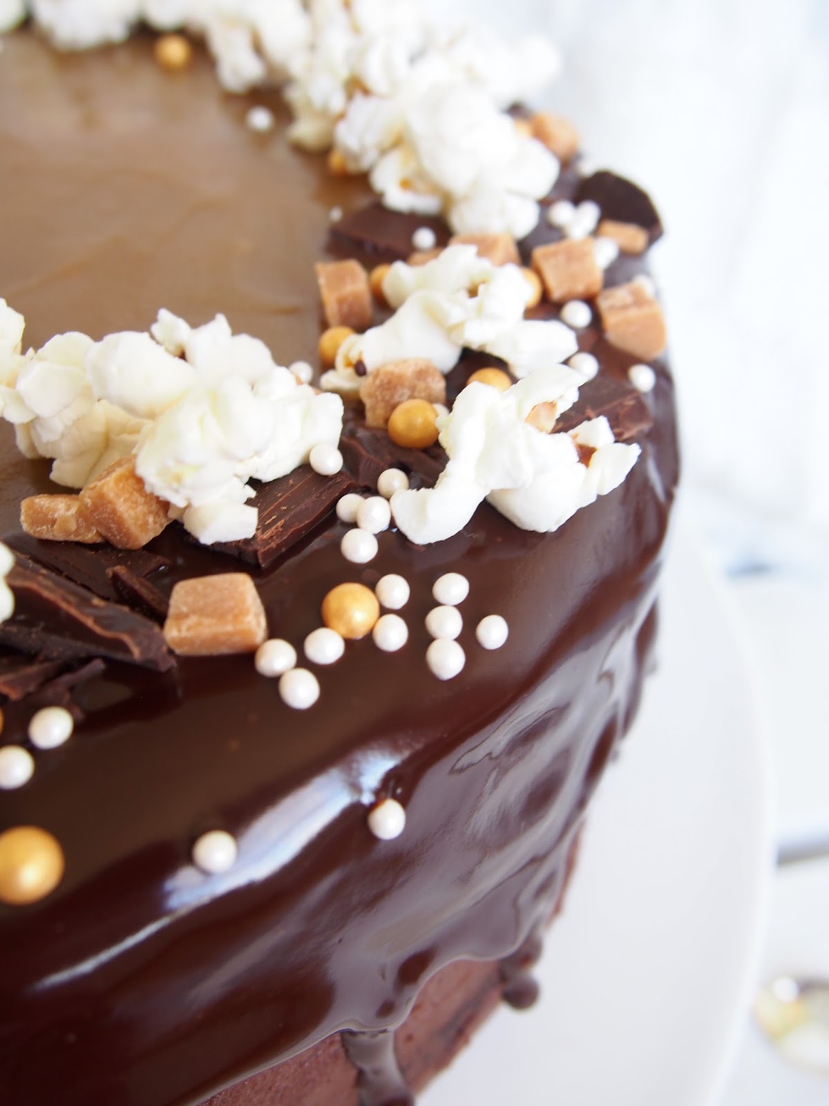 Tänään onkin vuorossa niiiiin överi synttärikakku ettei rajaakaan (överi on meidän toinen nimi, joten ah). Jos joku siellä ruudun takana on tiukalla kuntokuurilla tai dieetillä, suosittelen siirtymään pois sivulta! Koska.. suklaata, suklaata, suklaata, kinuskia, suklaata… Kuulostaako hyvältä? 😉 Jos luit tänne asti, saatat olla menetetty tapaus (ja sielunsisko<3), joten jatka siis reseptiin..