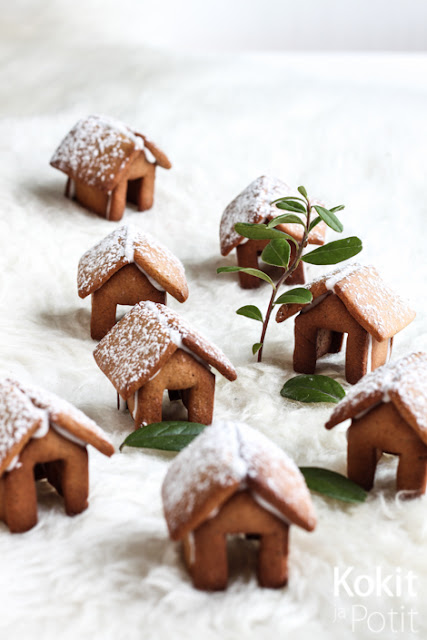 Pikkuruiset piparkakkutalot sopivat glögimukin reunalle, jälkiruokapöytään tai vaikka jäädykkeen tai juustokakun päälle.
