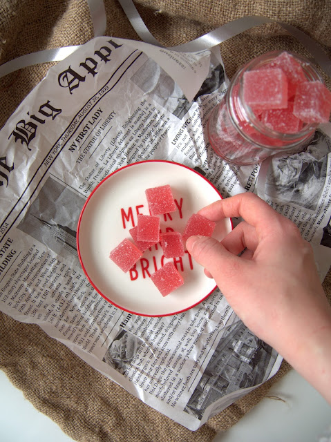5. Leikkaa haluamasi kokoisiksi paloiksi ja mikäli marmeladi on vielä ‘märkää’, voit antaa sen vielä kuivua muutamasta tunnista vuorokauteen.