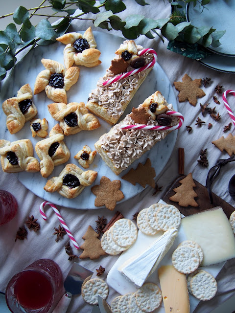 Eilisen sinivalkoisen teeman jälkeen jatketaan joulutunnelman parissa 🙂 Me pidimme viime viikonloppuna muutamille ystäville pienet pikkujoulut ja näitä herkkuja pöydästä löytyi;