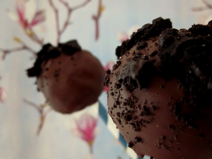 Suklaata kuorrutukseen ja tietenkin koristeita, mikäli niitä haluaa! Meillä koristeena toimi kekseistä jäljelle jääneet Oreo-murut.