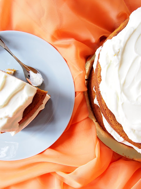 Siis porkkanakakku on yksi paras asia maailmassa. Sillä voisi ehkä neuvotella maailmanrauhan… Mutta, niin voisi kurpitsakakullakin. Otimme parhaan osan porkkanakakusta (toim.huom KUORRUTE) ja yhdistimme sen mausteiseen kurpitsapohjaan. Toimii. Ja kaikille skeptikoille, jotka eivät usko kurpitsakakun taikaan, ette edes huomaa eroa sen ja porkkanakakun välillä.