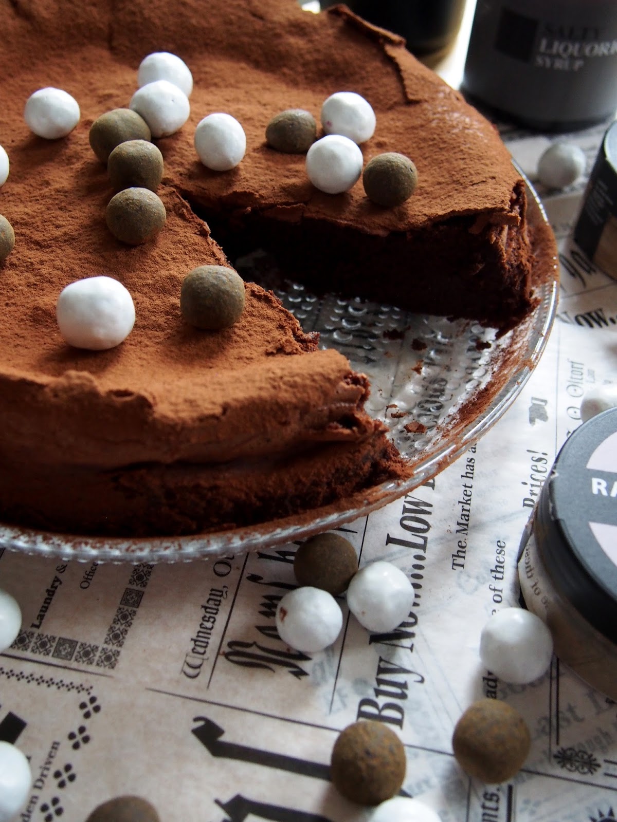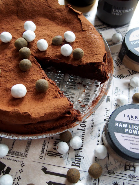 Raa’asta lakritsijuuresta jauhettu pulveri sopii mutakakkuun intensiivisen makunsa ansiosta, suklaa ei peitä makua vaan korostaa sitä entisestään (ja toisinpäin!).