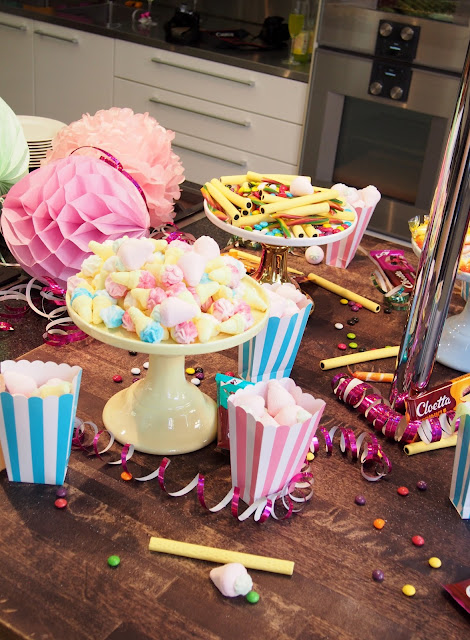 Järjestimme illan yhteistuumin Annin, Katrin ja Blogiringin kanssa ja iso homma siinä olikin! Tosin on aina ilo viettää iltaa samanhenkisten ihmisten kanssa! Tällä kertaa iltaa tuli vietettyä Helsingin Kulinaarisen instituutin upeissa puitteissa ja kuten värikkäistä kuvista näkyy, teemana meillä oli Candyland! Jos haluatte palauttaa viime vuoden muistot mieleen, kurkatkaa tästä Winter Wonderland LBI2015!