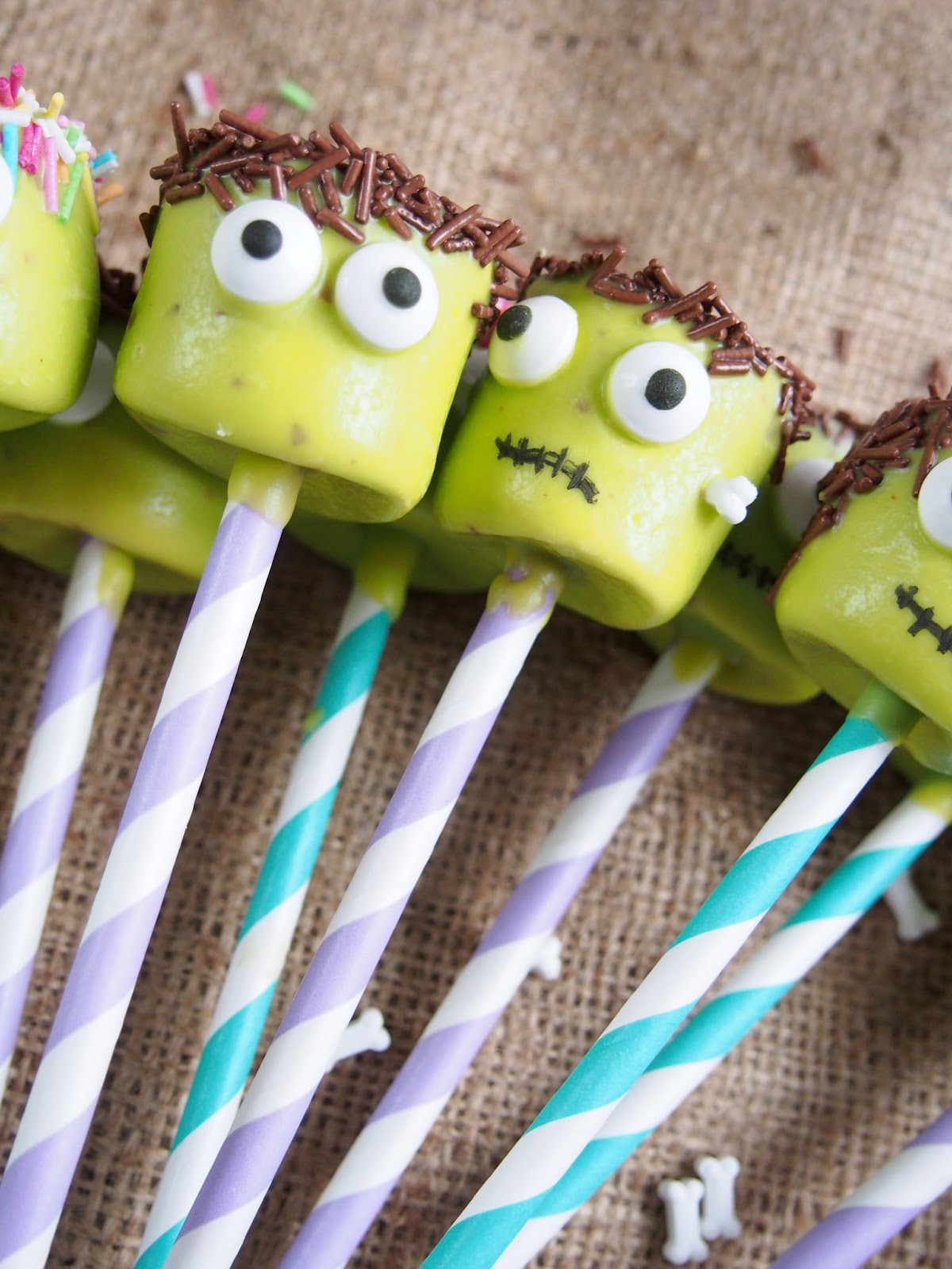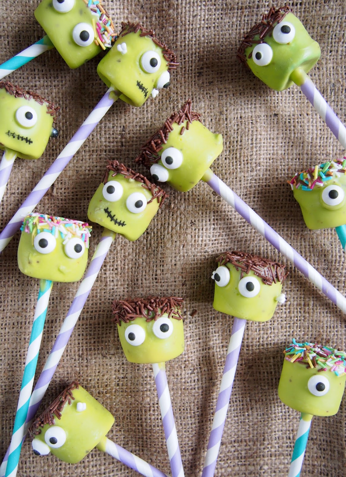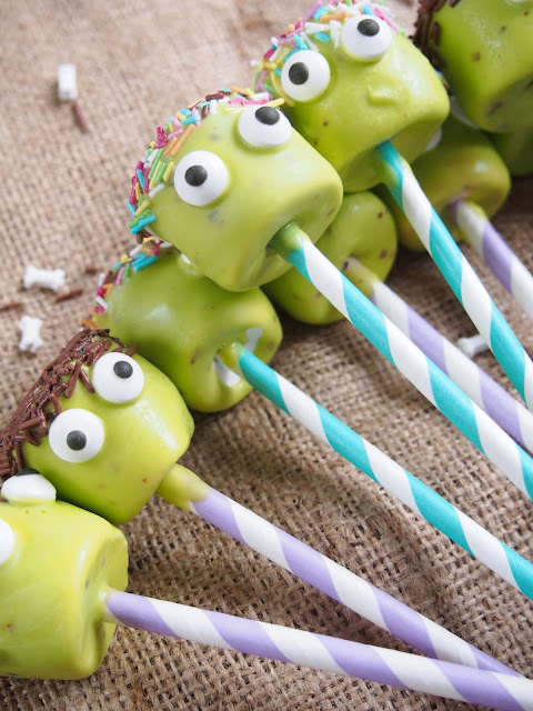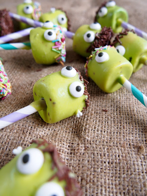 Nyt todella helppoon reseptiin, mitkä sopii ihanasti tuleviin halloweenjuhliin ! Frankensteinin hirviön näköiset tikkarit koostuu isoista vaahtokarkeista ja vihreistä Candy Melts-napeista. Ne ovat sen verran helppoja tehdä, että myös lapset voi ottaa mukaan niiden näpertelyyn!