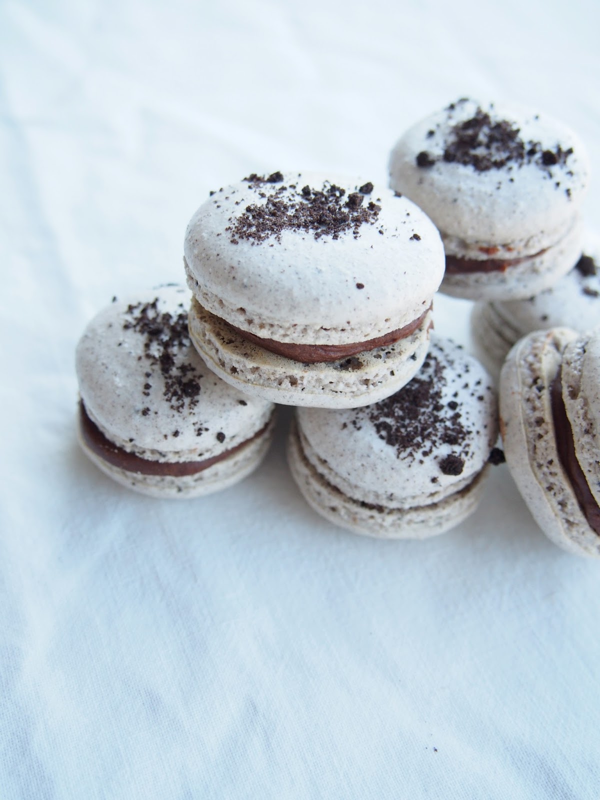 – Tämäkin voi johtua monesta eri asiasta, mutta todennäköisintä on, että joko mantelijauho/tomusokeriseos ei ole tarpeeksi hienoa tai taikinaa on sekoitettu liian vähän. Hyvä taikina on jo pursotettaessa kiiltävää. Muunnokset resepteissä kuten alla olevissa oreo-macaronseissa on myös otettava huomioon. Koska taikinassa on oreo-murua, ei macaronseista tule yhtä sileitä, kuin pelkkää mantelijauhoa sisältävistä.