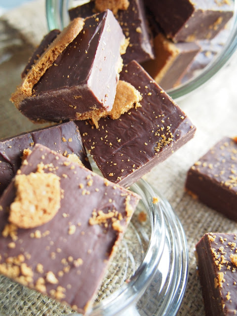 Täällä valmistellaan kovasti jo joulua, ja piparkakkuiset suklaafudget sopii niin lahjaksi kuin joulupöytäänkin. Ensinnäkin näitä herkkuja on helppo valmistaa ja toiseksi nämä korvaavat (edes vähän) sitä koloa minkä Fazerin piparkakkusuklaalevyn lopetus jätti sydämiimme.