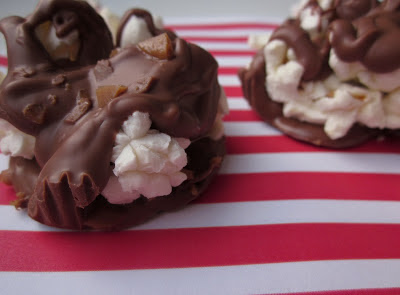 4. Ripottele suklaan päälle daim-rouhe ja popcorneja haluamasi määrä.
