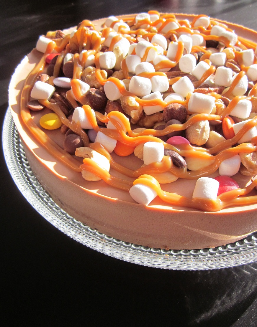 Tuunasimme juhliin normaalista suklaamoussekakusta rocky road kakun. Ja sen verran nopeasti se tarjolta katosi parempiin suihin, että ilmeisesti kelpasi! 🙂