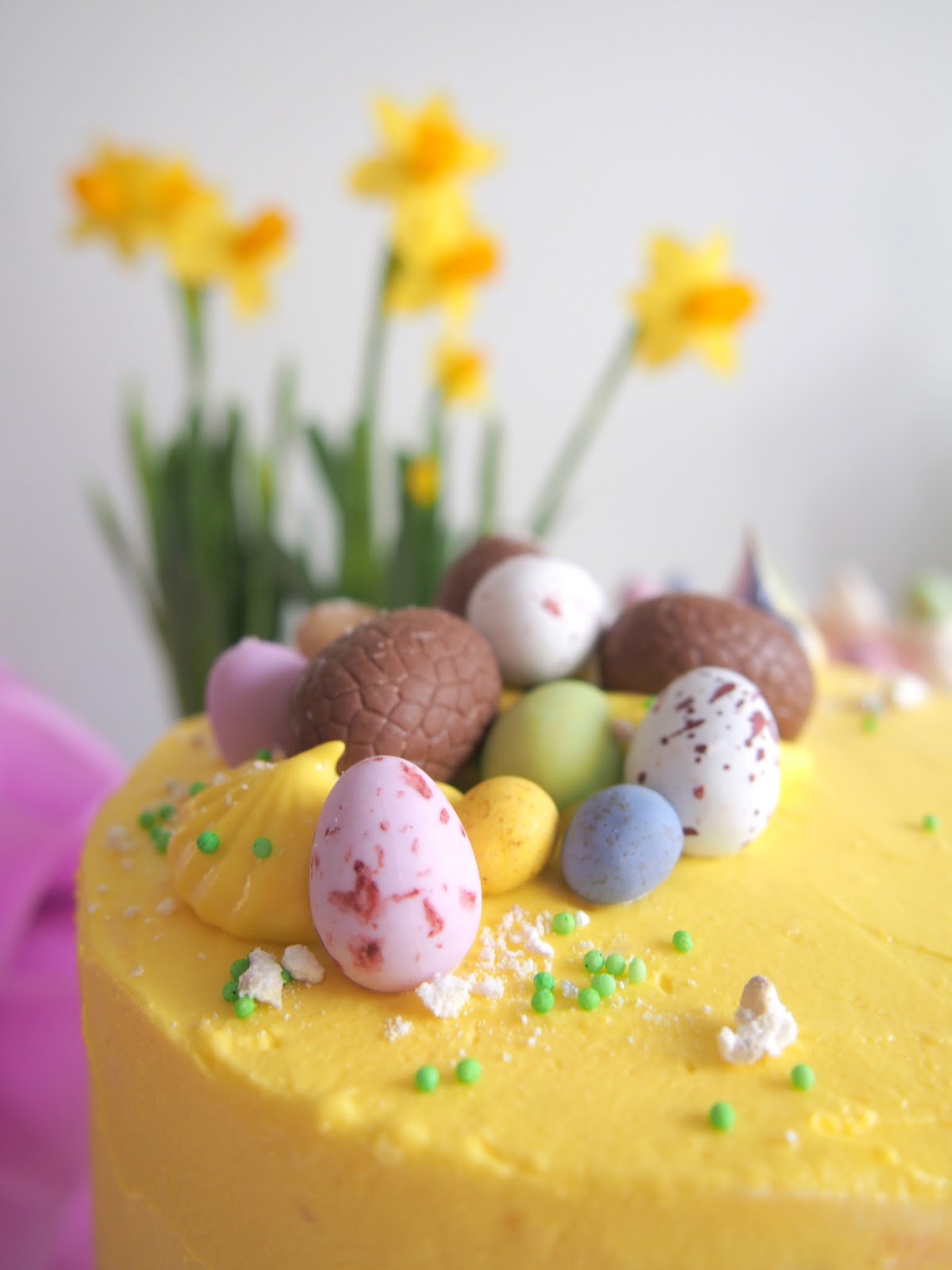 Suurin osa varmaan huomasikin facebookin ja instagramin kautta, että meillä oli Annin kanssa alkuviikosta pienet pääsiäiskuvaukset missä testailimme muutamia uutuuksia Annin kaupasta. Meiltä syntyi pirtsakan keltainen pääsiäiskakku, missä on sisällä herkullinen mousse persikasta ja sitruunasta. Ihanan keveän makuinen 🙂
