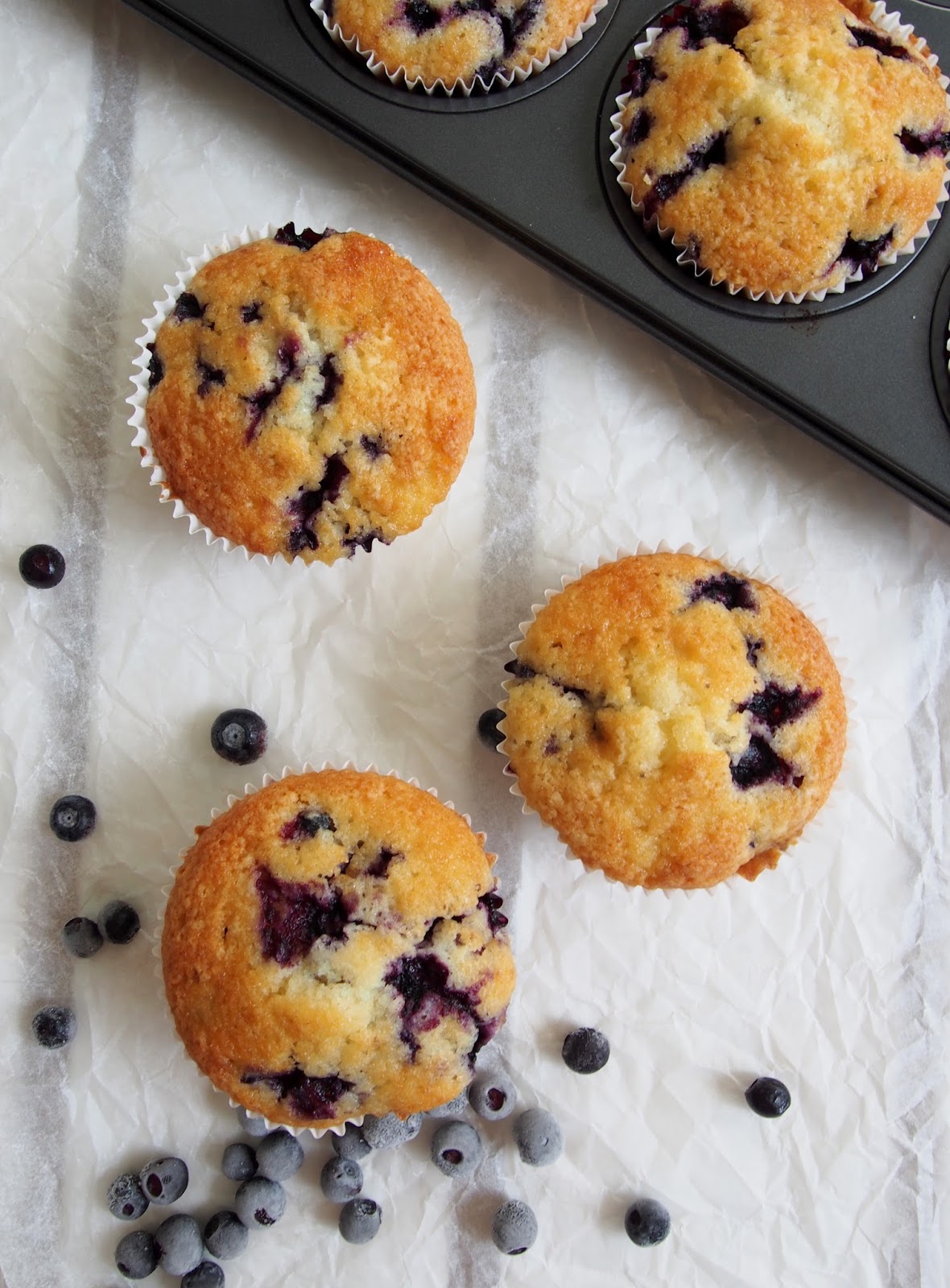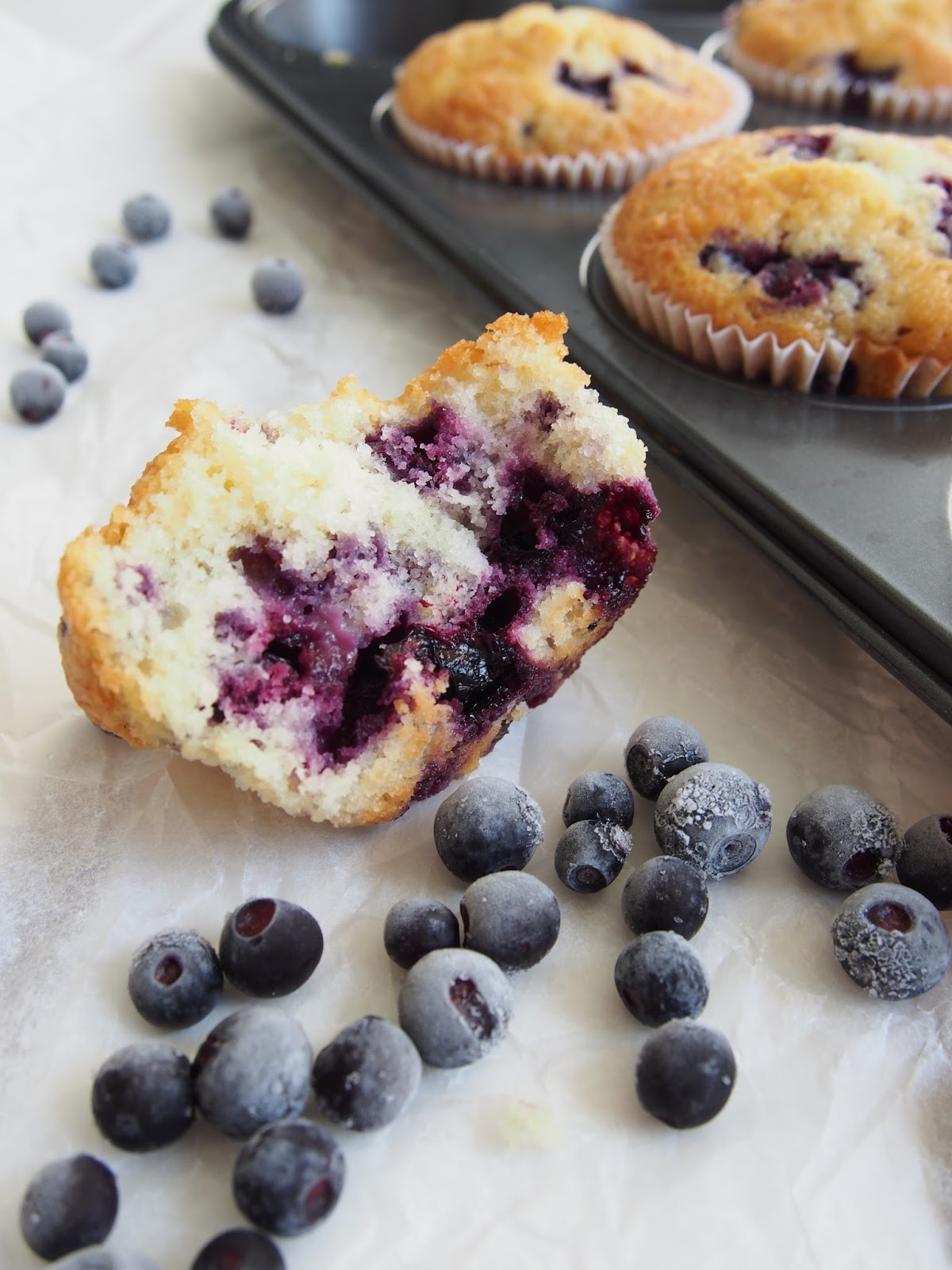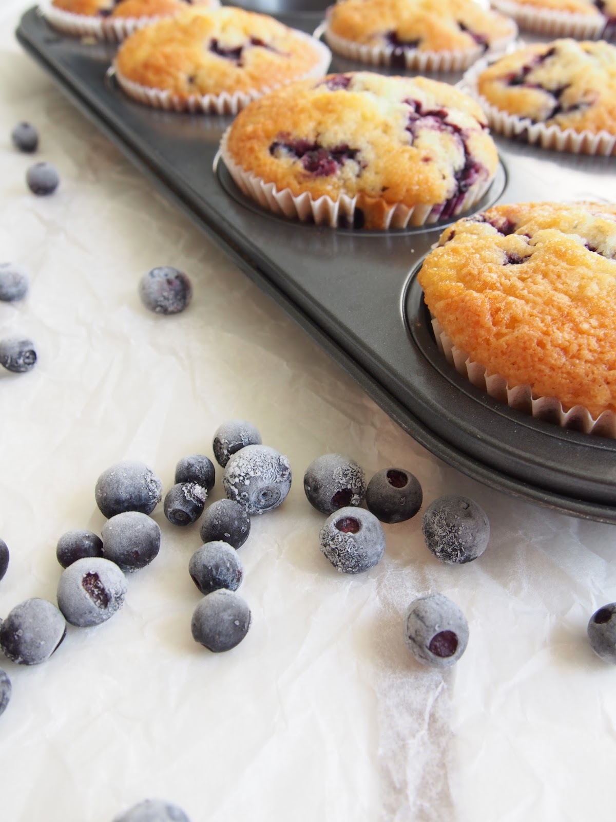 Sellainen helppo resepti tällä kertaa. Suurimmalla osalla on varmaan pakkanen täynnä mustikoita, joten ei kun leipomaan 😉 Ja jos mielummin herkuttelen vadelmalla, kokeile näitä ihania vadelma-kardemummamuffineita.