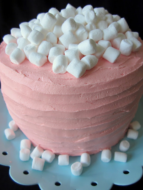 Tässäpä oiva idea 'tuhota' vaahtokarkin loput pois pyörimästä. Mutta kukahan sen kakun söisi?