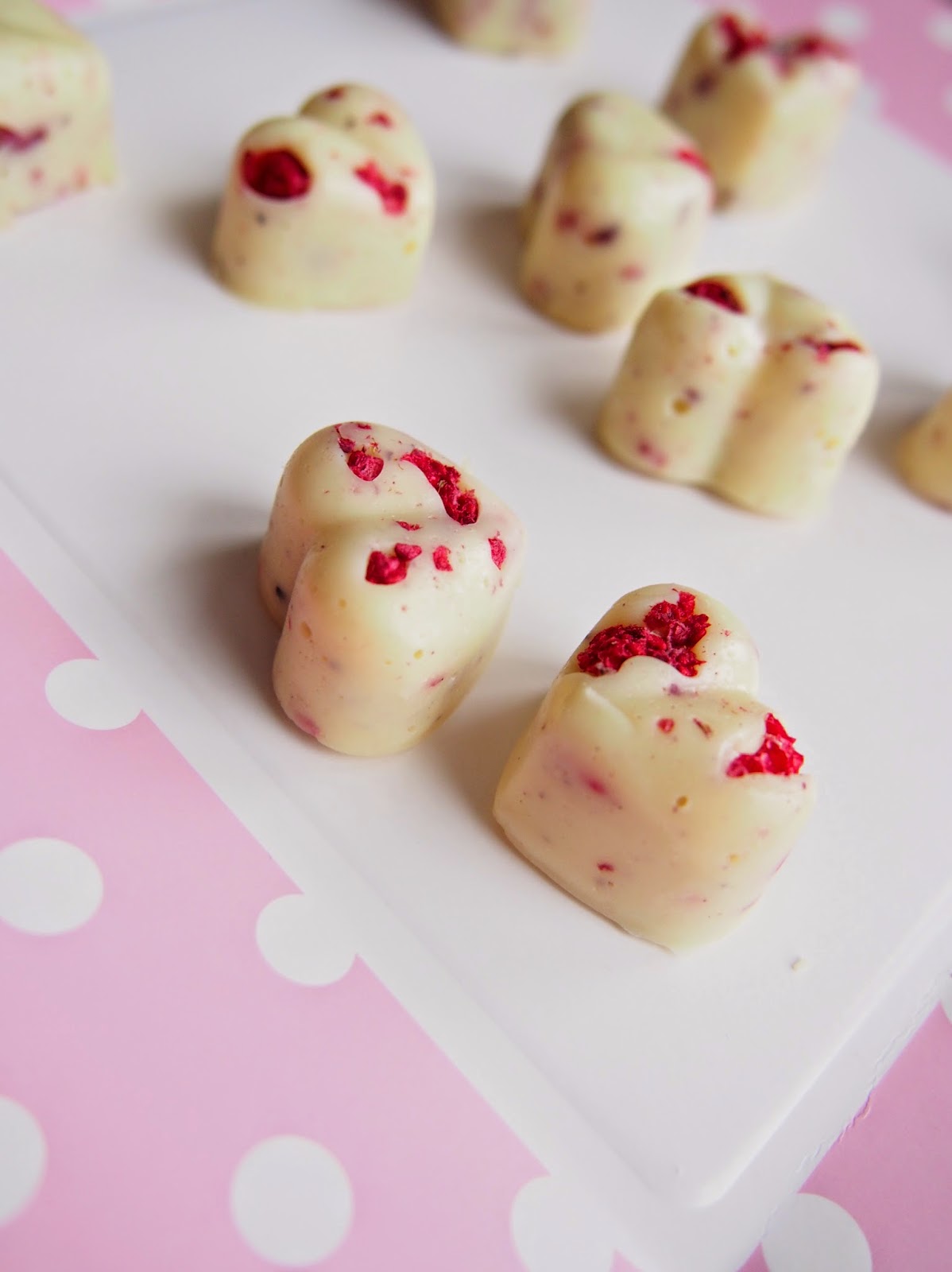 Seuraavan ja viimeisen ystävänpäiväherkun aika. Valkosuklaan ja vadelman yhdistelmä toimii AINA. Mietittiin hetki oltaisiinko heitetty sekaan myös turkinpippurirouhetta, mutta jätettiin se seuraavaan kertaan. Teimme vielä ystävänpäivän kunniaksi fudget silikonisiin sydänmuotteihin lisäämään ekstrasuloisuutta! Näitä on helppo pakata sellofaaniin ja antaa lahjaksi! 🙂