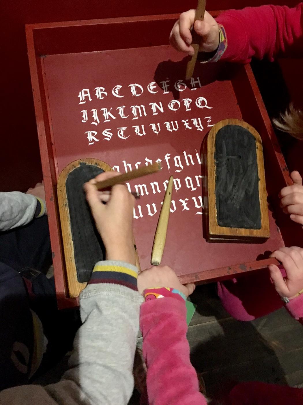 Museo oli lapsille mieluinen. Historiasta kiinnostunut esikoinen olisi voinut viettää museossa vaikka koko päivän. Museon näyttelyssä oli kivoja tehtäväpisteitä lapsille mm. vahatauluun kirjoittaminen.