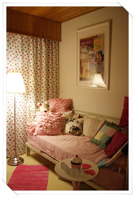 Äiti teki mun lapsuudenkotiin pintaremontin vähän aikaa sitten. Silloin sisko sai vaaleanpunaisen huoneen ja mm. olohuone muuttui violetiksi. Nyt heillä on todella kaunista, ei ole vaikea arvata mistä sisustusintoni periytyy.:)