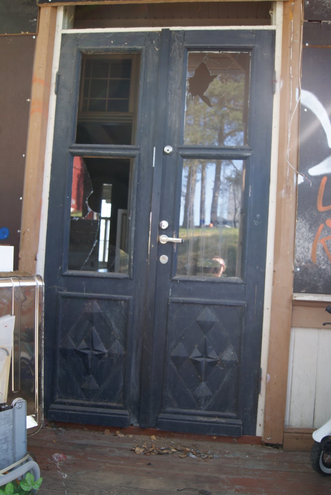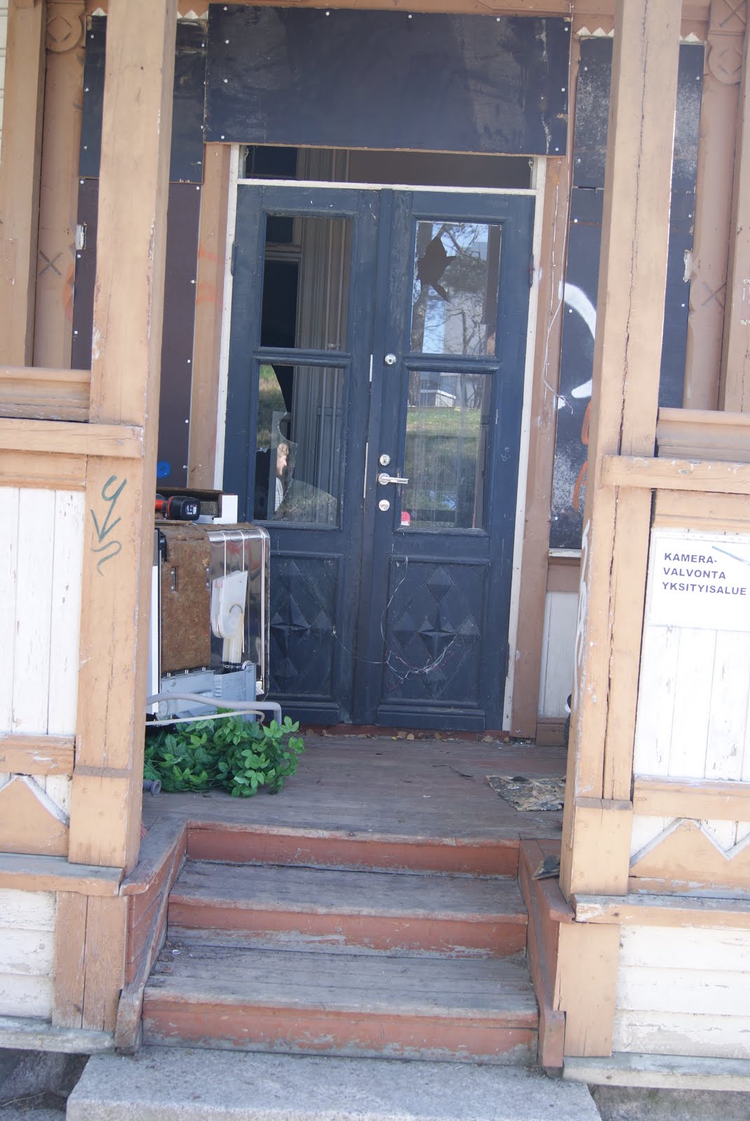 Päivän paras juttu ei kuitenkaan ollut niin perinteinen. Nimittäin paras juttu oli se, että mies päätti ottaa meidän tulevan pääoven edestä suojalaudat pois ja kunnostaa ovien ikkunat.