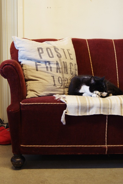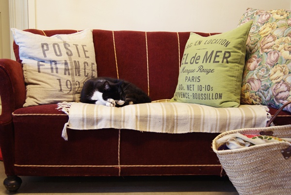 Ai joo, kuvissa mun uusin kirppisostos. Pyykkikori leluille 2 euroa. Sekä Oskun uusi lempipaikka. Mikin sohva kotiutui toistaiseksi eteiseen, ja siinä Osku tykkää kölliä.