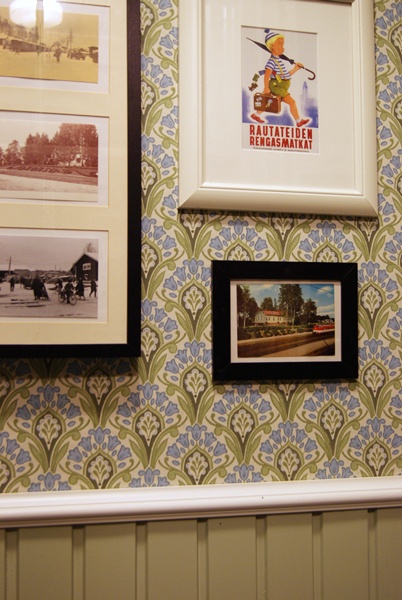 Olen todella tyytyväinen eteiseen, siitä tuli ihanan pirteä ja kutsuva. Seinille keräilemme juna-aiheisia juttuja. Sielä on jo mm. vanhoja postikortteja meidän asemasta sekä ensimmäinen lehtijuttu meistä Vantaan Sanomissa. Toi lehtijuttu on ihan vaan siksikin, jotta muistaisimme mistä lähdettiin ja missä ollaan nyt. Tuomassa siis uskoa ja intoa jatkaa.