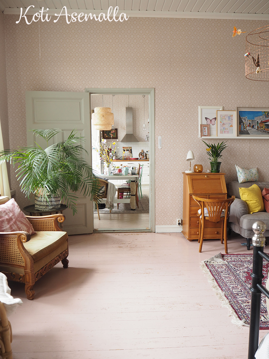 Kun ulkona oleilu lisääntyy, sisällä ollaan suht vähän. Kovasti tekisi mieli toukokuussa aloittaa jotain maalausprojekteja. Ainakin tuo olohuoneen sohvapöytä voisi vihdoin saada maalia pintaansa. Lastenhuoneesta lähti tuo punainen samettisohva pois. Se on ollut tosi ihana, siro, kaunis muoto ja kauniit jalat. Nyt se on kuitenkin ihan rikki. Kissat ovat raapineet sen rikki, ja Nestori pomppinut pelatessa jouset lyttyyn. Nyt jouset paistaa, niin että jalka osuu terävään jatkuvasti. Joten siitä joudun harmissani luopumaan. Olisi ihana verhoiluttaa se, mutta se olisi kallis työ. Eikä meille kissojen takia kannata sitä enää tuoda meille. Se olisi pian taas rikki…