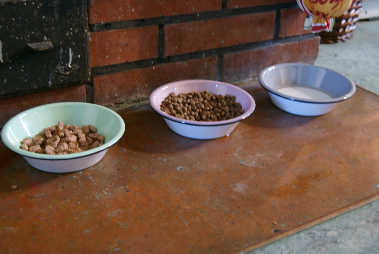 Postissa tuli myös kissojen uudet ruokakipot. Näin jossain sisustuslehdessä vanhat emaliset kupit lemmikkien kuppeina, ja yritin huutonetistä itsekin metsästää vastaavia. Ei tullut vastaan hyviä, mutta juuri, kuin tilauksesta, Gaudete kids mainosti Variopinten emalisia retkiastioita, ja niihin ihastuin. Eihän nämä vanhoja ole, mutta kivan värisiä. Kissat tosin kaataa helposti ainakin tuon vesiastian, mutta ruokakupeiksi nämä on kivoja.