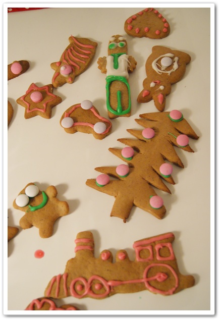 Meillä oli tänään perinteiset piparitalkoot. Muutama vuosi ollaan jo kokoonnuttu sisarusten ja äidin kanssa leipomaan yhdessä pipareita. Ekat kerrat taidettiin olla mun isoveljen perheen luona, sitten mun äidillä ja nyt kun meilläkin on hyvän kokoinen keittiö, pidettiin talkoot meillä. Tänä vuonna mukana oli ekaa kertaa myös pikkuinen puolivuotias veljenpoika, joka vielä toistaiseksi ihan vain seuraili sylistä muiden touhuja.:) Ei mene kauaa kun pikkumieskin koristelee niillä kuuluisilla ”kerran jo suussa käyneillä”-karkeilla pipareita muiden joukossa.:D