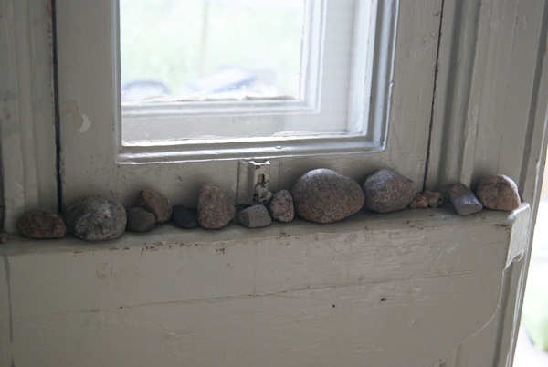 Niistä kepeistä en tykkää sitten yhtään, mutta täytyy myöntää että tuo eteisen ikkunalle kummasti kerääntynyt kivijono on oikeastaan aika kaunis.:)