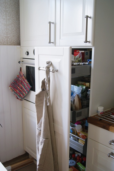 Ikean keittiö on tosi hyvä! Näihin saa kivoja sisällysjuttuja, ja tämä korkea kuivaruoka-kaappi on tosi hyvä!