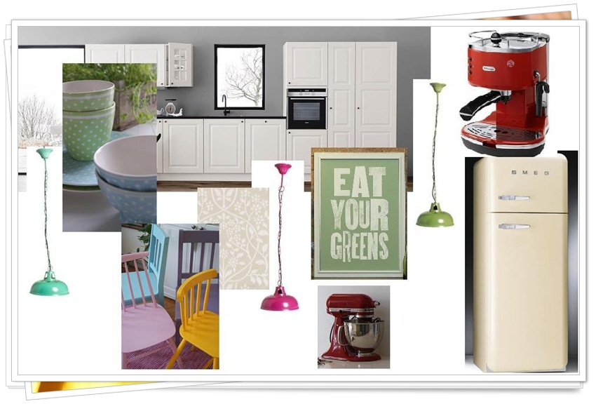 Vielä pientä viilaamista on: Aloin vähän miettimään että jätettäisiin panelointi sittenkin johonkin 120 cm korkeuteen, ei 160 cm niin kuin piti. Helpompi ripustaa tauluja ym. Myös tuo jääkaappi on vielä mietinnässä, mikä koko ja merkki. Lattian värikin on vielä pikkuisen epävarma.