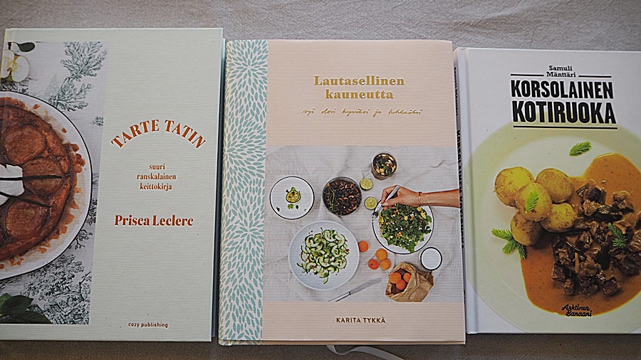 Voisi kuvitella että olen kovakin kokkaaja, kun sain joululahjaksi taas kolme keittokirjaa. En mä kyllä ole. Enimmäkseen ruoanlaitto on jokapäiväistä pakkopullaa jonka mielelläni siirtäisin jollekin toiselle. Välillä kuitenkin innostun ja kokeilen uusia juttuja, jolloin se arjen pakkopulla muuttuu kivaksi harrastukseksi. Sitäpaitsi mä rakastan kirjoja, ja niistä myös keittokirjoja. Joten, olivat erittäin mieluisia ja toivottuja lahjoja.
