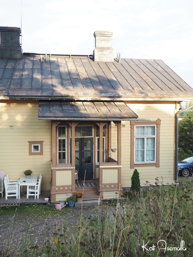 Meillä tässä talossa on just tuo talon ulkokuori erityisen suojeltu, eli toisin sanoen ulkonäköä ei saisi yhtään muuttaa. Talon väriksi haettiin mahdollisimman alkuperäinen, ja koristeosat katsottiin tarkkaan että tulee samanlaiset. Sitähän ei tiedetä paljonko ne on ennen meitä muuttunut koska kuvia pihan puolelta ei ole yhtään vaikka ollaan niiden perään kyselty kaikkialta.