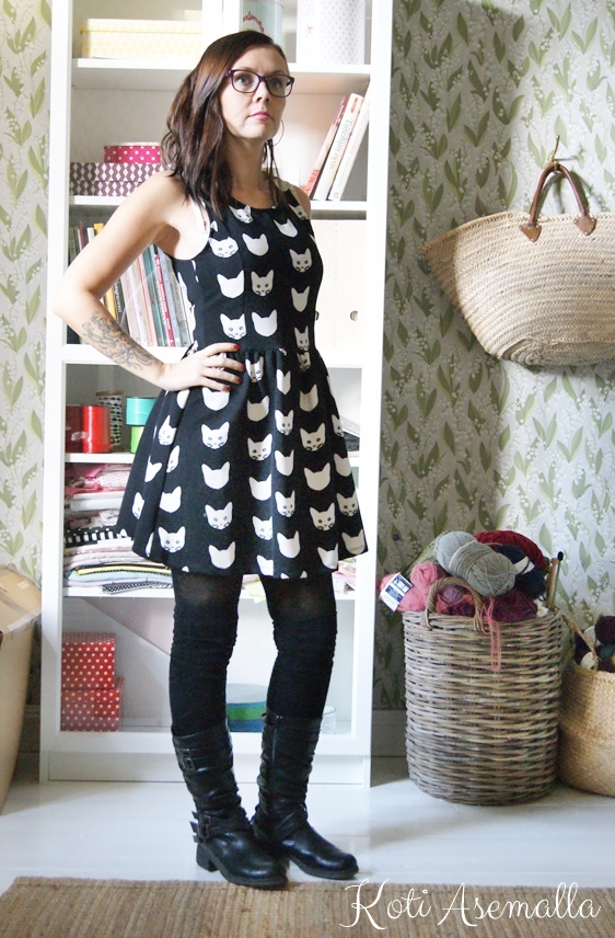 Mun halusin laittaa nämä kuvat tänne, koska ensinnäkin tuo mekko on mun yksi lemppareista. Aina kun vedän tuon päälle, joku sanoo että onpa sulla kiva, vähän erilainen mekko. Olen mekon ostanut H&Mltä jo pari vuotta sitten. Nyt raskaus-ja pahimman imetysajan se sai odottaa kaapissa, mutta on taas kovassa käytössä. Toimii niin kaupungilla kuin kotimekkonakin. Lyhyt mekko ja polvisukat, taitaa olla mun eniten käyttämä asuyhdistelmä.