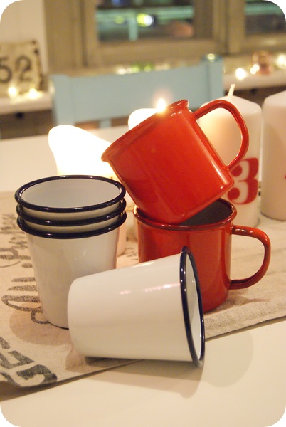 Mukit menee nyt kuitenkin lasten käyttöön, punaisista juodaan glögiä. Nämä on myös ihan parhaita retki-astioita!