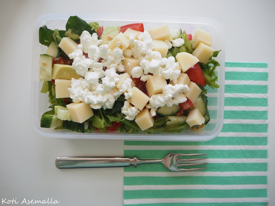 Lounaaksi syön ison salaatin jossa esim jotain juustoa, pastaa, rypsiöljyä…