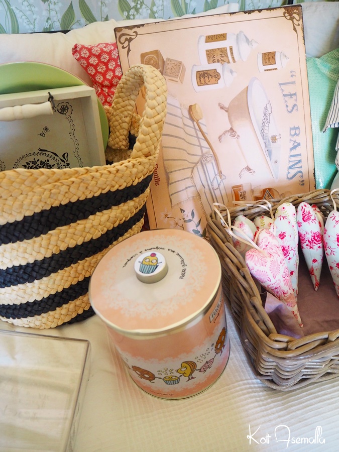 Huomenna sitten kaikki joukolla Vantaan Mikkolaan. Mikkolassa järjestettävällä Our house lähiöfestarilla on sielä sisäpihalla mun ja noin 12 muun myyjän sisustuskirppis. Mulla on myynnissä mm. kuvassa näkyviä juttuja. Sisustussydämiä, muutama Greengaten astia jne. Mun äiti tulee mukaan myymään ja häneltä löytyy Pentikin astioita, paljon kaitaliinoja, verhoja, lyhtyjä…