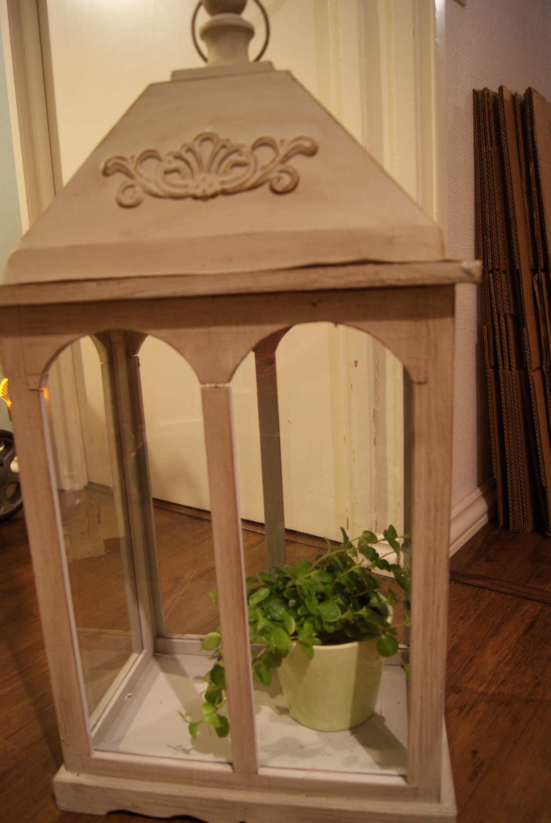 Ystäväni taas tupsahti meille pakkausavuksi, mukanaan tuo mielettömän ihana ja mielettömän iso lyhty! (oisko tuo joku puolimetriä korkea..? no enemmän!) Muistan kun alkutalvesta noita vastaavia ihailin ja ajattelin että sellainen olisi ihana sielä talon kuistilla. Silloin olin vaan varma etten sitä taloa saa….No tässä ollaan, ja nyt on lyhtykin!:)