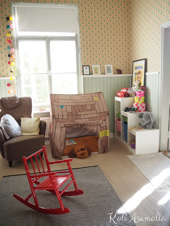 Nestorin huone on kyllä kotimme eniten muuttuva huone. Kalusteet vaihtaa paikkaa jatkuvasti kun käyttö on kokoajan muuttunut hoitolasten mukana, ja nyt Nestorin iän mukaan. Seuraavaksi lähtee hoitopöytä ja jotain muuta tulee tilalle.