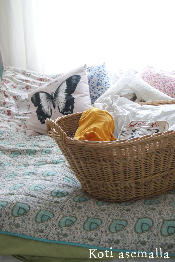 Yksi mun lemppari kirppislöytö Porvoossa oli iso rottinkinen pyykkikori.