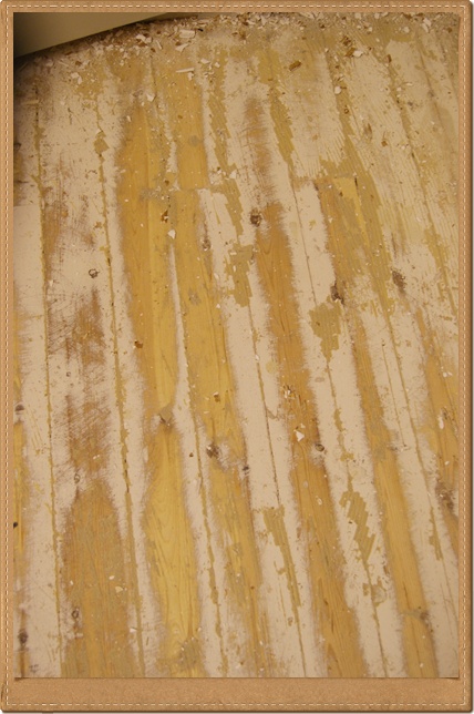 Mies hoitaa katon, mä lattian, kuten aina. Kolmasosa katosta onkin jo rapsutettu, tätä tahtia se voisi viikon päästä olla valmis maalattavaksi. Riippuen paljonko ehditään.