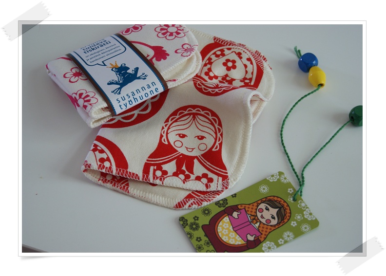 Mulla on itsellä myös käytössä vain vastaavia bamburättejä lattia-sekä tiskirätteinä. Oli ilo löytää puoti joka tekee niitä vielä kivoilla kuvioilla!