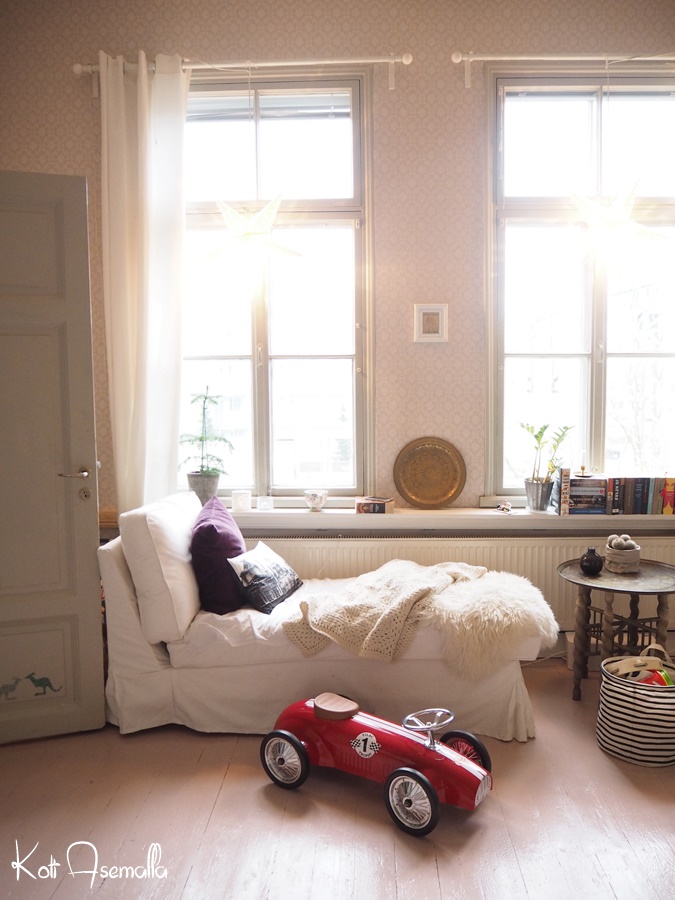 Hyvältä näyttää! Korituoli on kyllä suosikkini. Teillä on niin ihana talo. 😉 Täytyykin hakea meidän värikäs pallovalosarja leikkimökistä!
