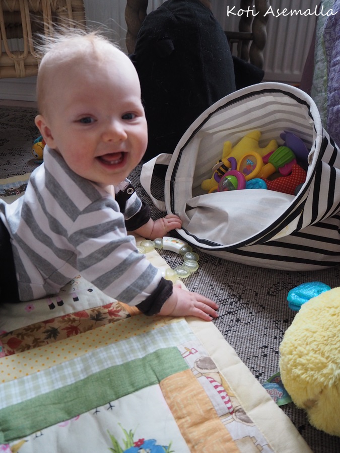 Huomatkaa, olen saanut vihdoin ompelukoneen esille ja vähän ompelujuttuja aloitellutkin. Meinaankin tänään pyytää että mies ottaisi vauvan mukaan katsomaan esikoisen sählyharjoituksia, jos saisin vähän lisää ommeltua. Toki tuolla nuo pihahommatkin odottelis kun vihdoin ei sada… No katsotaan nyt kumman valitsen.