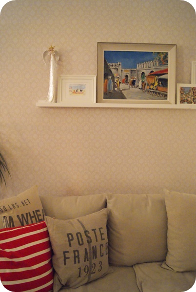No nyt on tauluhylly ja olen todella tyytyväinen! Mun mielestä on tosi kiva kun tuohon voi vaihdella noita tauluja vaikka joka päivä! Sitäpaitsi nehän vaihtui vähän jo tässä kesken mun kuvaamisen. Mun lemppari joulukoriste, tuo pitkä enkeli löysi vihdoin hyvän paikan.