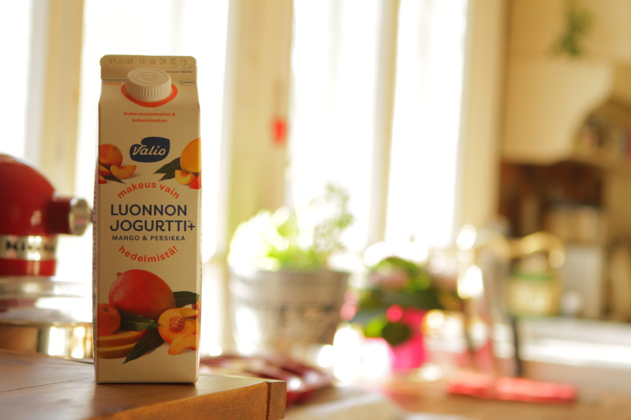 Tällaista tuotetta olen etsinyt, nimittäin maustettua, sokeroimatonta ja makeutusaineetonta jogurttia. Sekä Luonnonjogurtti+ päärynä & banaani, että mango & persikka maistuvat meidän koko perheelle.  Niitä on saatavissa perinteisissä litran pakkauksissa.