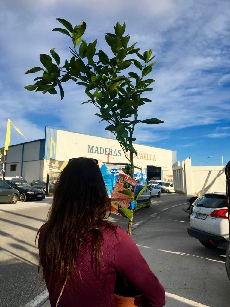 Viimeisenä reissupäivänä käskin Tuukkaa pysäyttämääm yhden puutarhaliikkeen kohdalle. Ostin itselleni sieltä 11 eurolla ihan hyvän kokoisen appelsiinipuun. Sen jälkeen tungimme sen naureskellen vuokra-autoomme ja aloimme pohtia miten saamme sen Suomeen. Ryhmässämme heräsi kysymys että saako sitruskasvia ylipäätään tuoda EU:n sisällä maasta toiseen, ja pienen googlettelun jälkeen päätimme yrittää.