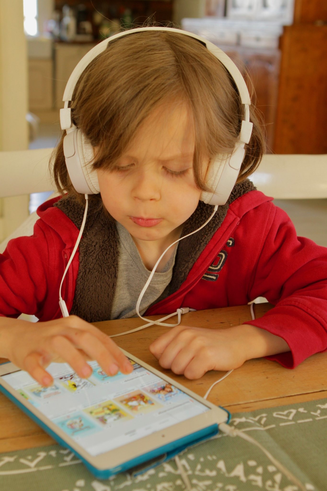 Bookbeat on myös helppo ja selkeä kayttää. Tässä mallia näyttää 6-vuotias Torsti.