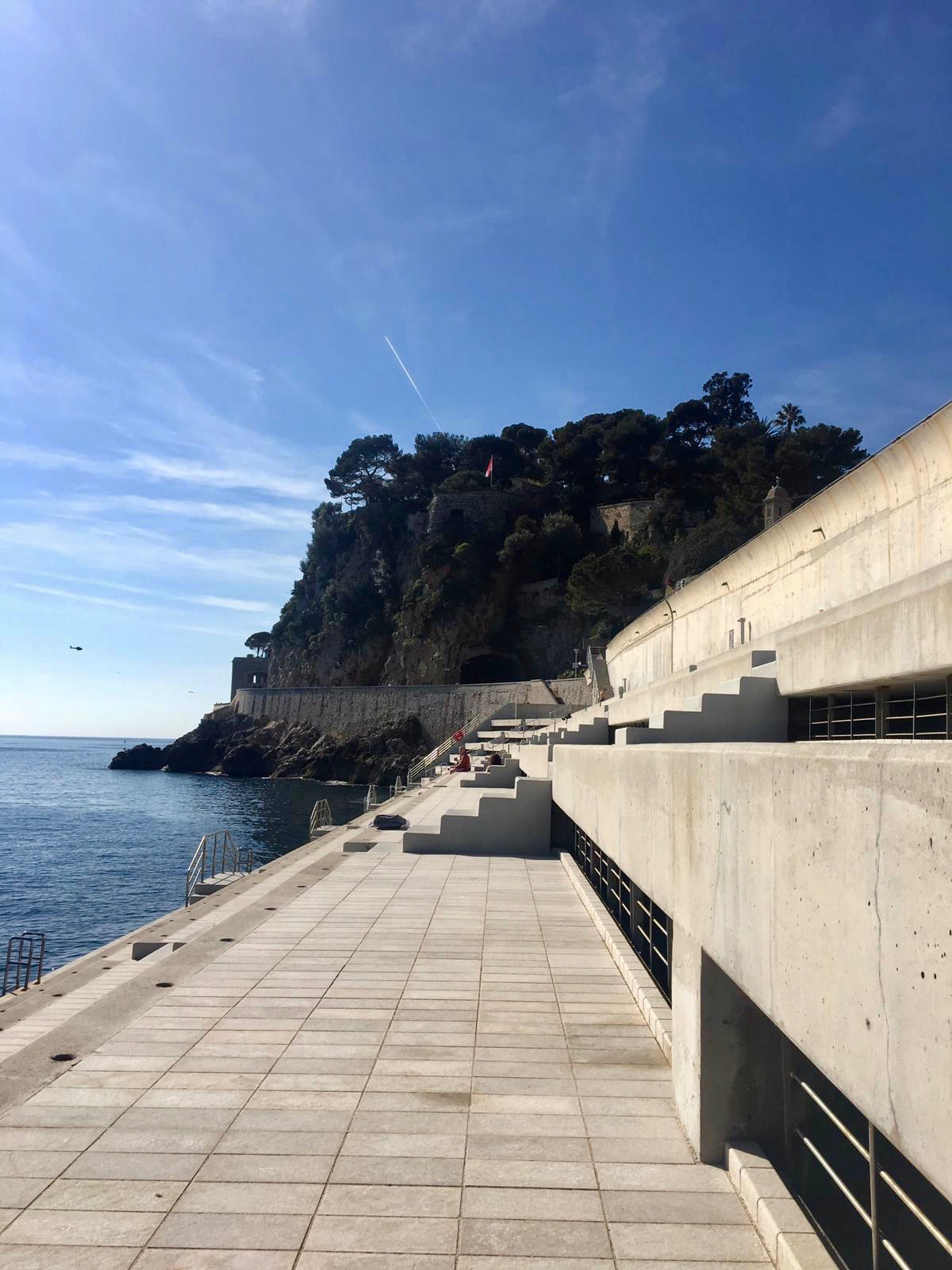 Kaupunkivaltio Monacon pieni (vain 1,95 neliökilometriä) koko tekee siitä erityisen kiinnostavan. Jokainen neliömetri on hyödynnetty, ja lisää neliöitä näkyi olevan rakenteilla rantaan, osittain meren päälle. Monacolaisesta tilojen hyödyntämisen kekseliäisyydestä kertoi mm. aallonmurtajan päälle rakennettu “uimaranta”, joka oli siis valtavat betoniportaat mihin ihmiset kesällä kerääntyvät ottamaan aurinkoa ja uimaan. Miksei!?